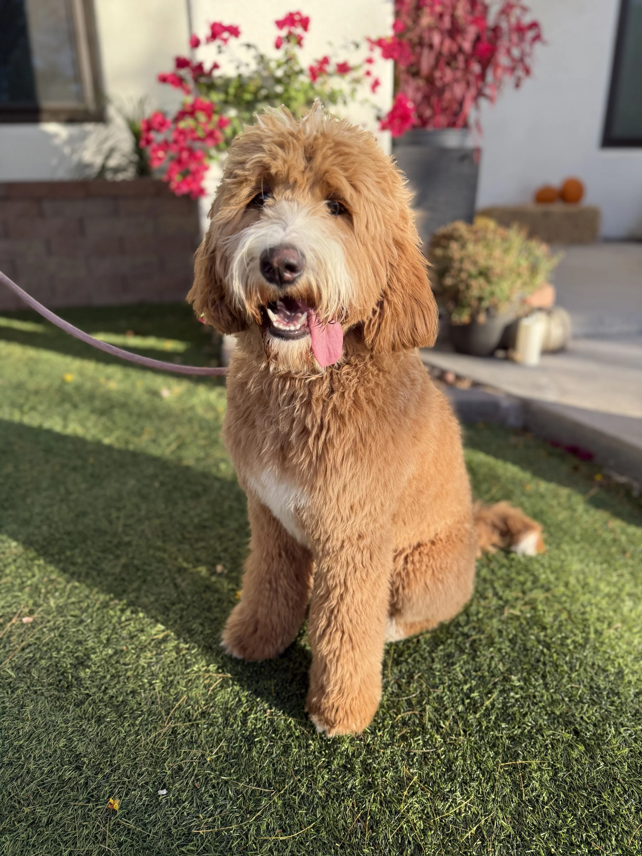 Generation: F1b Goldendoodle Coat: Wavy Color: Apricot Size: Standard- 50lbs